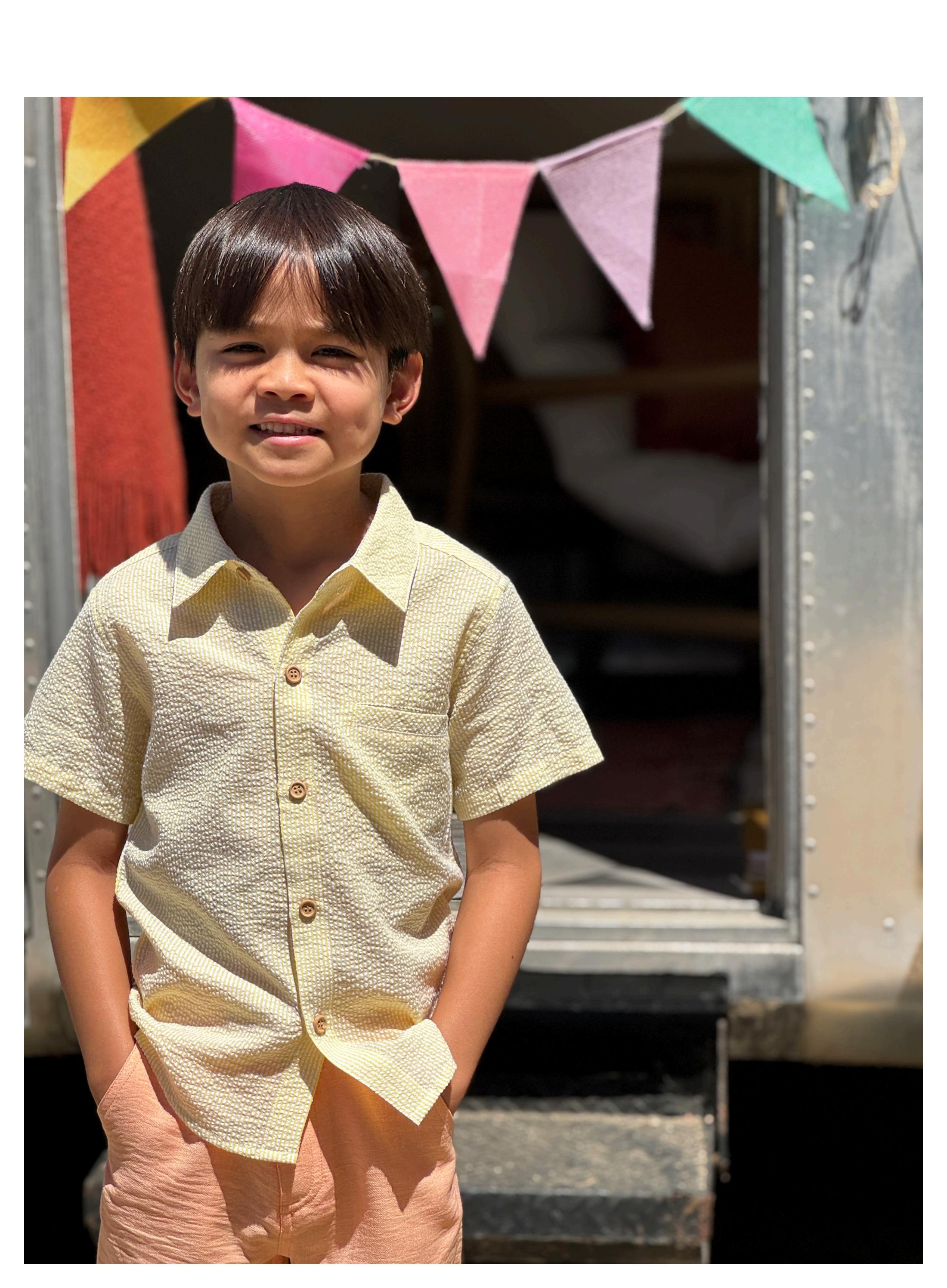 Get ready for sunshine and smiles with the Lemon Seersucker Woven Shirt by Me and Henry. This delightful NEWPORT style brings a burst of citrus-inspired color to your little one's closet. The textured seersucker fabric keeps things cool and comfy during those warm days, while the timeless preppy design works for everything from playdates to special occasions. Perfect for baby boys and toddlers who deserve a pop of personality in their everyday looks.