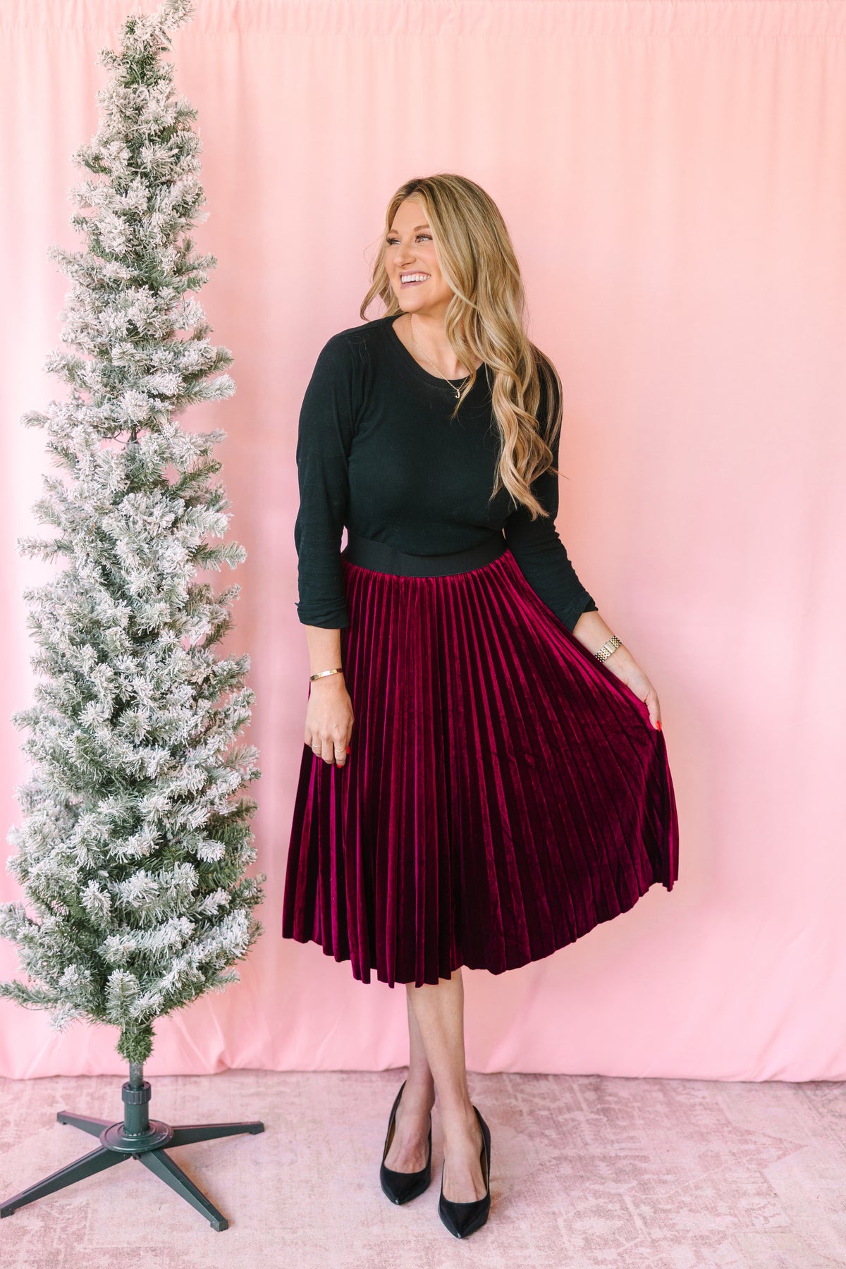 Hot Pink Pleated Skirt