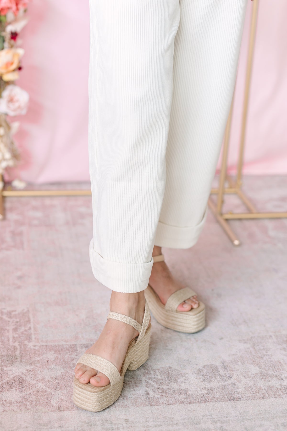 Add a playful spin to your outfit with these Ivory Corduroy Pants. Made from irresistibly soft corduroy, their wide-leg design lets you move freely while keeping things comfy and stylish. The creamy ivory color brightens up any look, making these pants a fun and cozy addition to your casual wardrobe.