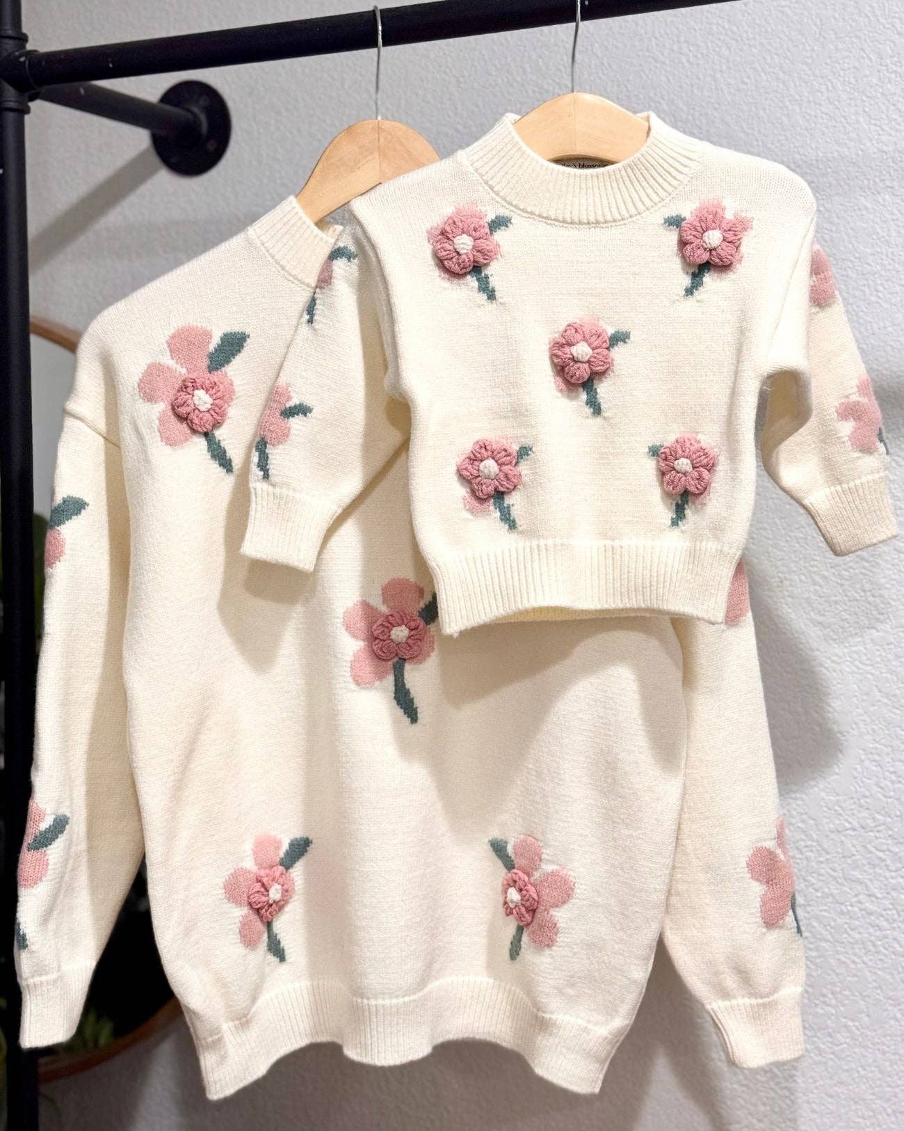 Cozy, charming, and effortlessly stylish! Our Mommy and Me Emily Floral Knit Sweater in Cream is a timeless layering piece designed for matching moments with your mini. Featuring a soft cream base and delicate floral knit detailing, this sweater combines comfort with everyday elegance. Perfect for family photos, seasonal outings, or simply staying warm in style, it’s a wardrobe favorite you’ll both reach for again and again! ✨ Features: ✔ Soft knit fabric for warmth and comfort ✔ Delicate floral design for a feminine touch ✔ Classic crew neckline and easy pull-over fit ✔ Available in both adult and children’s sizes for perfect matching From cozy coffee dates to picture-perfect adventures, the Mommy and Me Emily Floral Knit Sweater – Cream brings charm and comfort to every occasion! FIT: This item is running true to size. FABRIC & CARE: * 100% polyester* * Imported * Machine Wash Cold, Lay Flat To Dry *all items sold separately