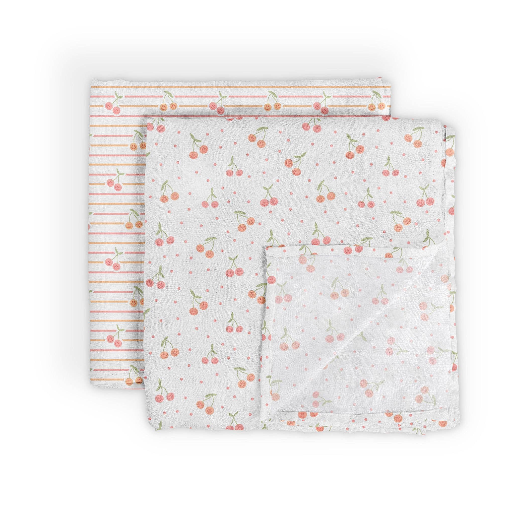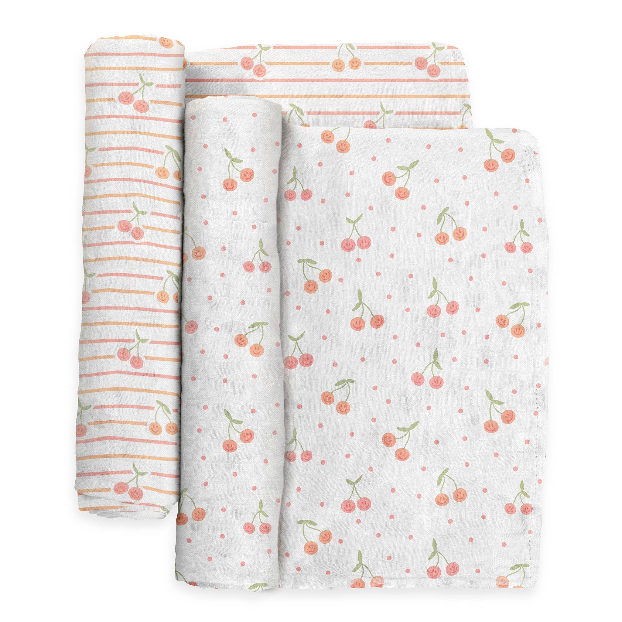 The Swaddle Blanket Set from JuJuBe × Studio Oh! includes two blankets, each with an irresistible, on-trend design. While perfect for swaddling newborns, these blankets can also be used for tummy time, as lightweight stroller covers, and as nursing throws. Each measures 44 by 44 inches (112 cm × 112 cm) and is made of sustainable, non-GMO bamboo fabric that is gentle and soft on Baby’s skin. Designed with sweet artwork in nursery-friendly colors, these blankets come packaged in a giftable box, making them a perfect surprise for new parents and moms-to-be. Two swaddle blankets measuring 44"W × 44"L (112 cm × 112 cm) each 100% viscose from bamboo; produced using non-GMO, sustainable plants Machine washable