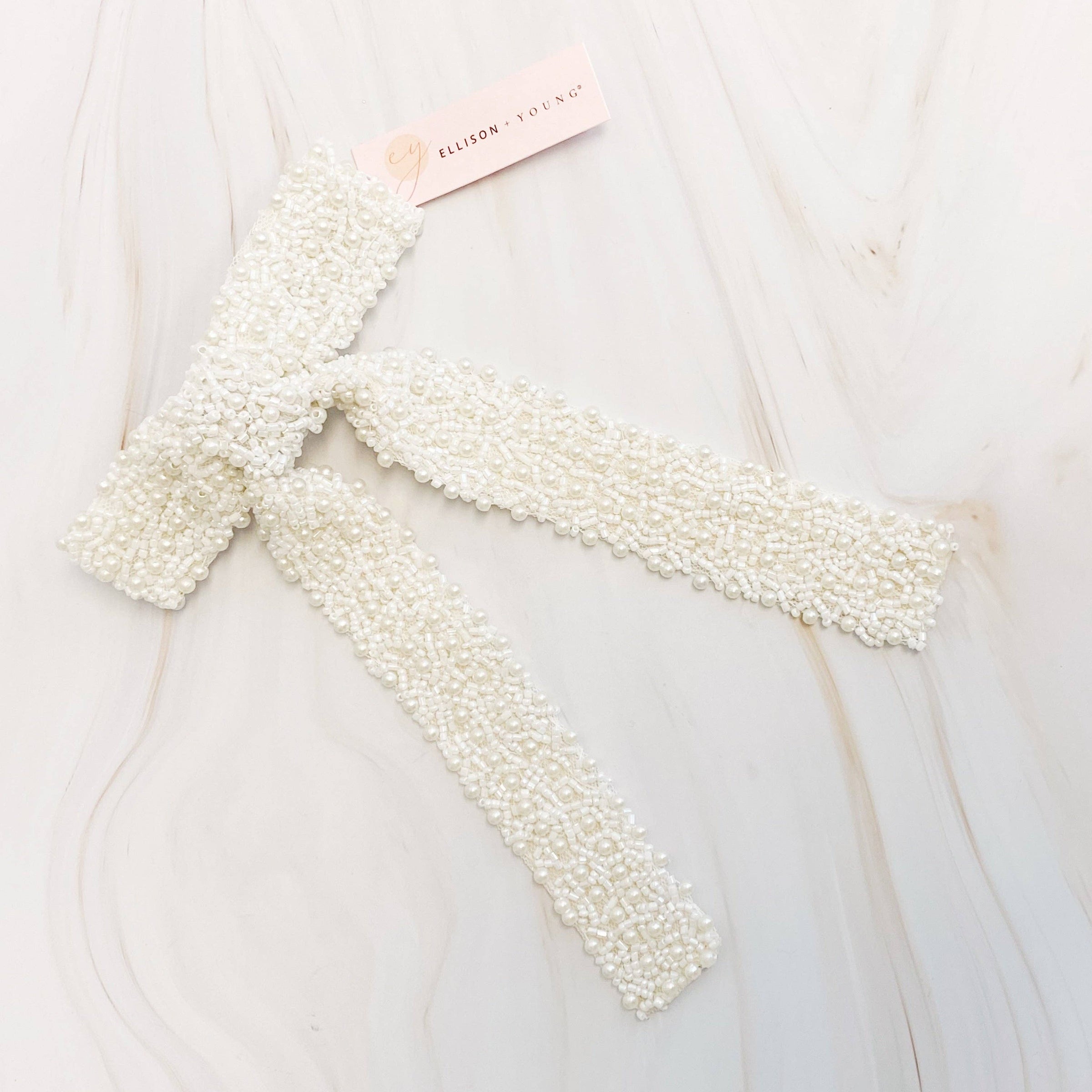 This Beads Work Pretty Bow Hair Clip features a beautifully beaded bow in a creamy shade, with satin detailing underneath. The intricate beading adds a touch of elegance. Perfect for adding a touch of glamour to any hairstyle.